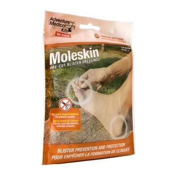 Moleskin is the most reliable dressing for blister prevention available. Adventure Medical Kits has made it easier than ever to apply, adding die-cut shapes to fit common problem areas, including the heel, side of foot, and toes. Apply moleskin to problem areas before you begin hiking or as soon as you feel friction on the trail, and blisters will be a thing of the past. Includes alcohol wipes for surface preparation.
