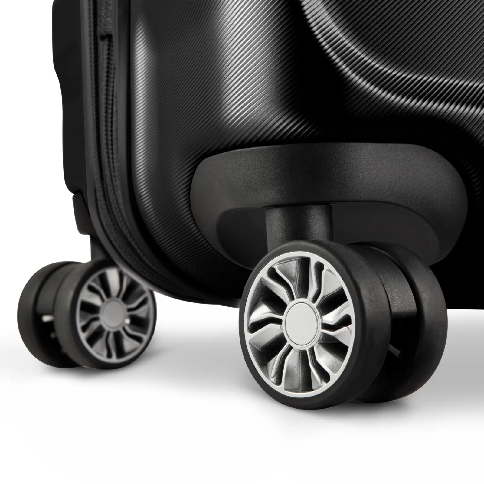 - 360º dual smooth-rolling any-direction wheels—recessed for stability